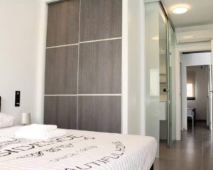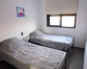 Falleg íbúð til skammtímaleigu í Punta Prima. Íbúðin sem er á jarðhæð er 69m2 og samanstendur af 2 svefnherbergjum, 2 baðherbergjum, eldhúsi og stofu/borðstofu. Úr stofunni er útgengt á verönd sem snýr út í stóran sameiginlegan sundlaugagarð þar sem er sundlaug og nuddpottur. Veröndin er 30m2 og þar er hægt að baða sig í sólinni megnið af deginum. Húsið er með búnað fyrir 4 manneskjur, WiFi er í íbúðinni og fjöldi sjónvarpsstöðva. Bílageymsla er undir kjarnanum þar sem einkastæði er í boði.