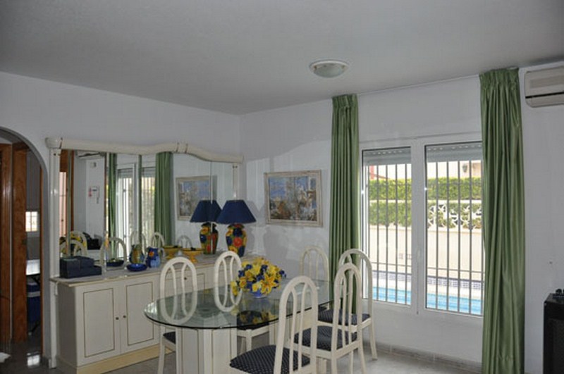 Raðhús til leigu í Campoamor. Húsið samanstendur af 3 svefnherbergjum, 2 baðherbergjum, eldhúsi og stofu/borðstofu. Húsinu fylgir góður garður en þar er einkasundlaug og grillaðstaða. Húsið er staðsett á góðum stað um 700m frá ströndinni.