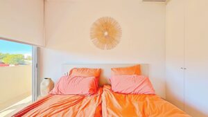 Virkilega falleg penthouse íbúð til sölu í Los Balcones, Torrevieja. Íbúðin sem er 84m2, samanstendur af 3 svefnherbergjum, 2 baðherbergjum, eldhúsi og stofu/borðstofu. Íbúðin er björt og huggulega innréttuð. Útgengt er á rúmgóðar svalir og þaðan upp á stórt og gott sólþak þar sem nóg pláss er til að baða sig í sólinni eða jafnvel njóta góðrar máltíðar. Íbúðin er staðsett í snyrtilegum, lokuðum kjarna þar sem íbúar hafa aðgang að sameiginlegri sundlaug. Geymsla fylgir íbúðinni, sem og stæði í bílageymslu.