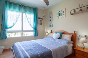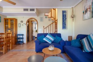 Gott raðhús til orlofs- eða vetrarleigu í Campoamor. Húsið samanstendur af 3 svefnherbergjum, 3 baðherbergjum, eldhúsi og stofu/borðstofu. Á neðri hæð eru stofan, borðstofan, eldhúsið og baðherbergi. Á efri hæðinni eru 3 svefnherbergi og 2 baðherbergi (annað inn af svefnherbergi). Húsið er staðsett í góðum kjarna en því fylgir stæði í bílageymslu og aðgangur að garði með sameiginlegri sundlaug.