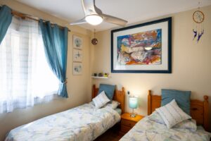 Huggulegt raðhús í Campoamor til orlofs- eða vetrarleigu. Húsið samanstendur af 3 svefnherbergjum, 3 baðherbergjum, eldhúsi og stofu/borðstofu. Inn af eldhúsinu er svo þvottahús. Útgengt er á bakverönd úr eldhúsinu en einnig er verönd og garður fyrir framan húsið. Af efri hæð er útgengt á fínar svalir. Húsið er staðsett í góðum, lokuðum kjarna þar sem íbúar hafa aðgang að garði með sameiginlegri sundlaug en einnig fylgir íbúðinni stæði í bílageymslu.