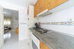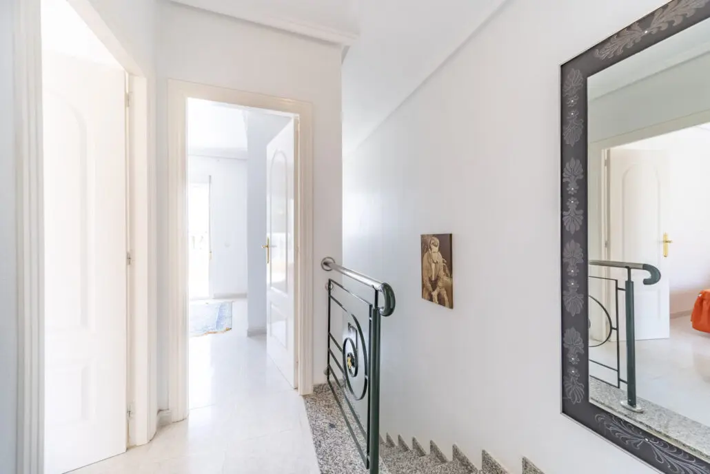 Raðhús til sölu í Doña Pepa, Ciudad Quesada. Húsið sem er á 2 hæðum, er 101m2 og samanstendur af 3 svefnherbergjum, 2 baðherbergjum, eldhúsi og stofu/borðstofu. Úr eldhúsinu er útgengt á verönd baka til, en einnig er rúmgóð verönd fyrir framan húsið. Útgengt er á svalir af efri hæð en samtals er útisvæðið um 50m2. Húsið snýr út í sameiginlegan sundlaugagarð sem er fallegur og er vel við haldið. Geymsla fylgir húsinu, sem og bílastæði. Loftkæling er í stofu og einu svefnherberginu. Húsgögn fylgja húsinu.