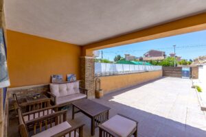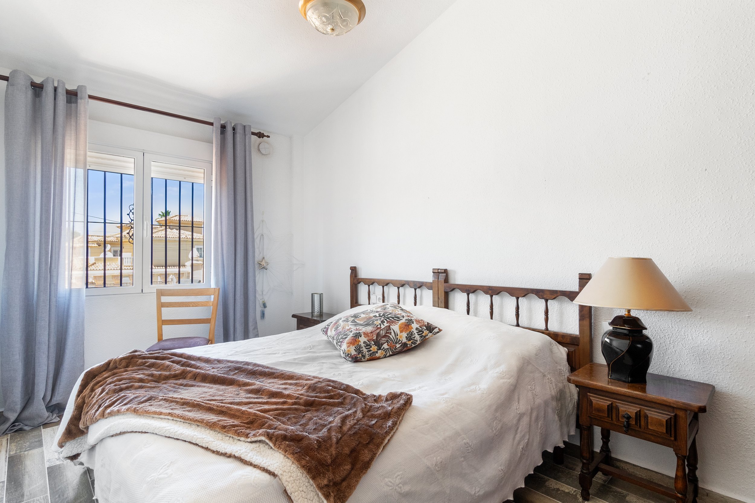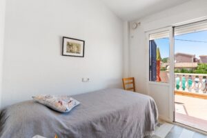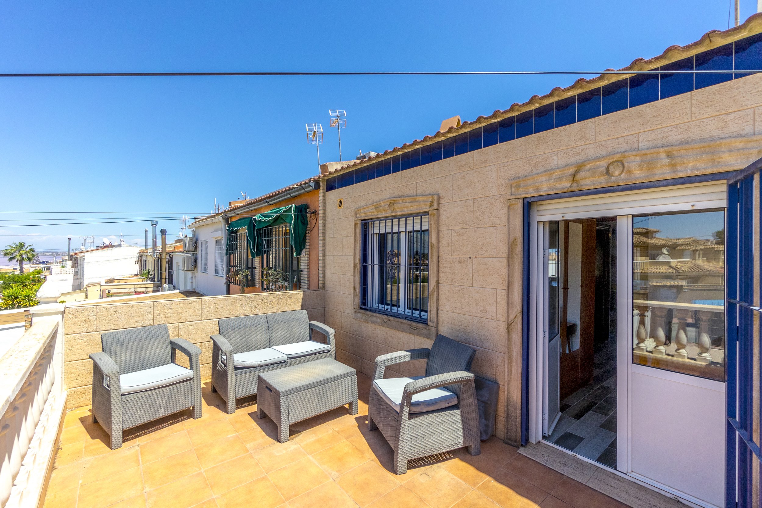 Huggulegt raðhús til sölu í Los Balcones. Húsið sem er 94m2 samanstendur af 2 svefnherbergjum, 2 baðherbergjum, eldhúsi og stórri stofu/borðstofu. Útgengt er á tvennar sólríkar svalir en einnig er húsið staðsett á 182m2 lóð þar sem er m.a bílastæði og geymsla.