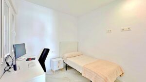 Fallegt raðhús til sölu í Los Balcones, Torrevieja. Húsið sem er á 2 hæðum er 113m2 og samanstendur af 3 svefnherbergjum, 3 baðherbergjum, eldhúsi og stofu/borðstofu. Við húsið er lokaður garður/verönd, en einnig er úgengt úr svefnherbergi á efri hæð út á góðar svalir og upp á sólþak þar sem tilvalið er að njóta sólarinnar. Húsið er staðsett í snyrtilegum, lokuðum kjarna þar sem íbúar hafa aðgang að sameiginlegri sundlaug.