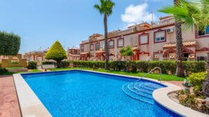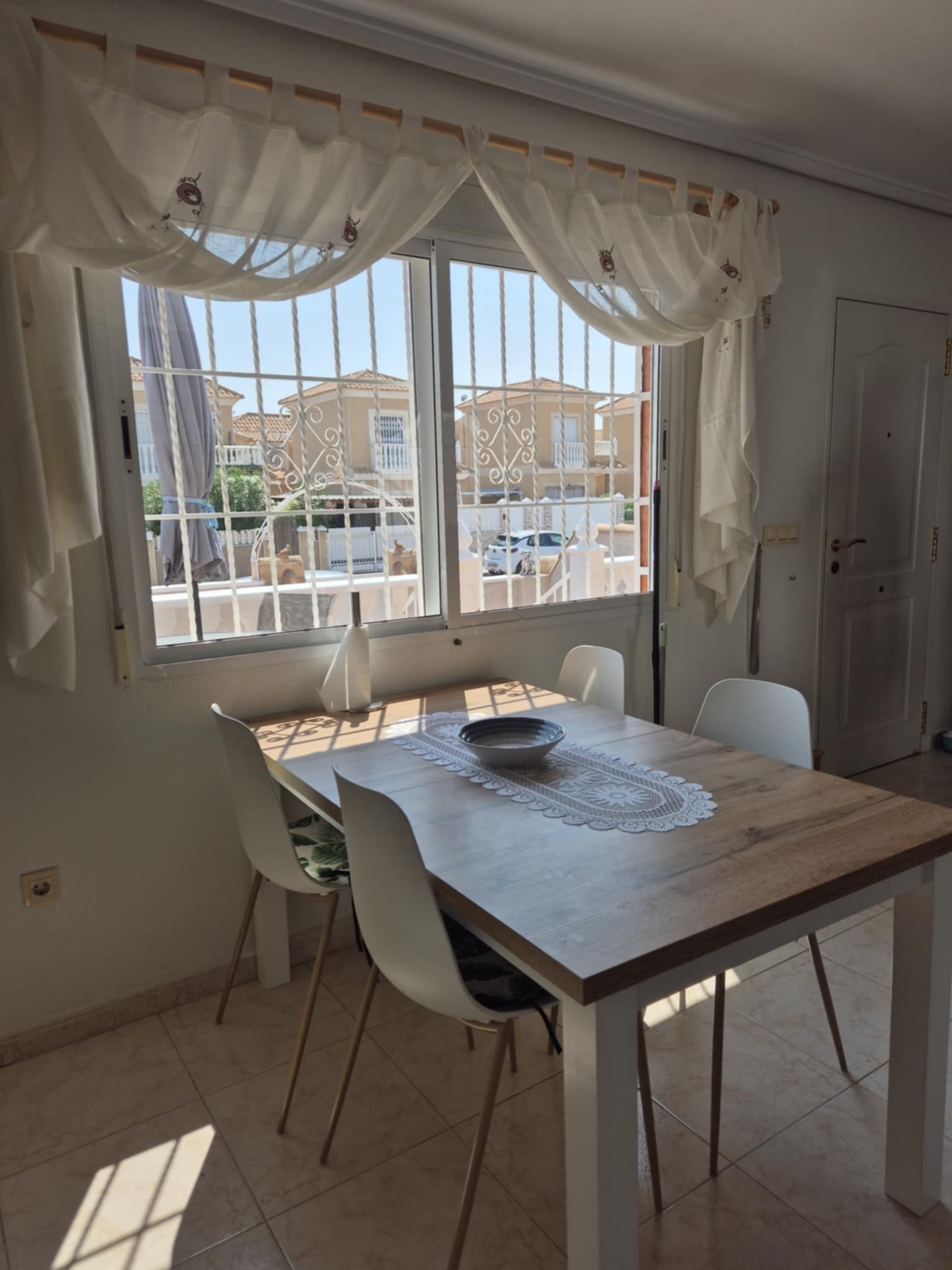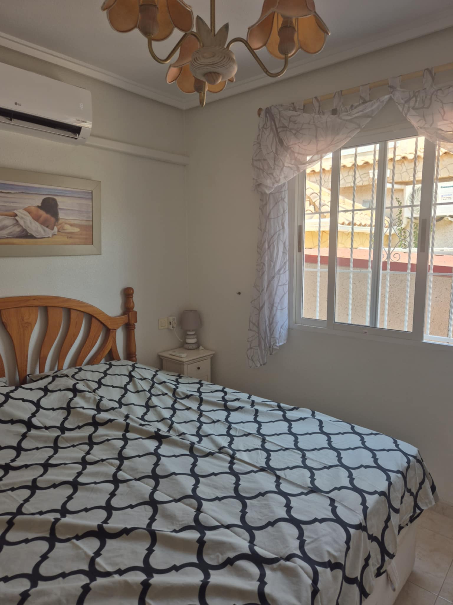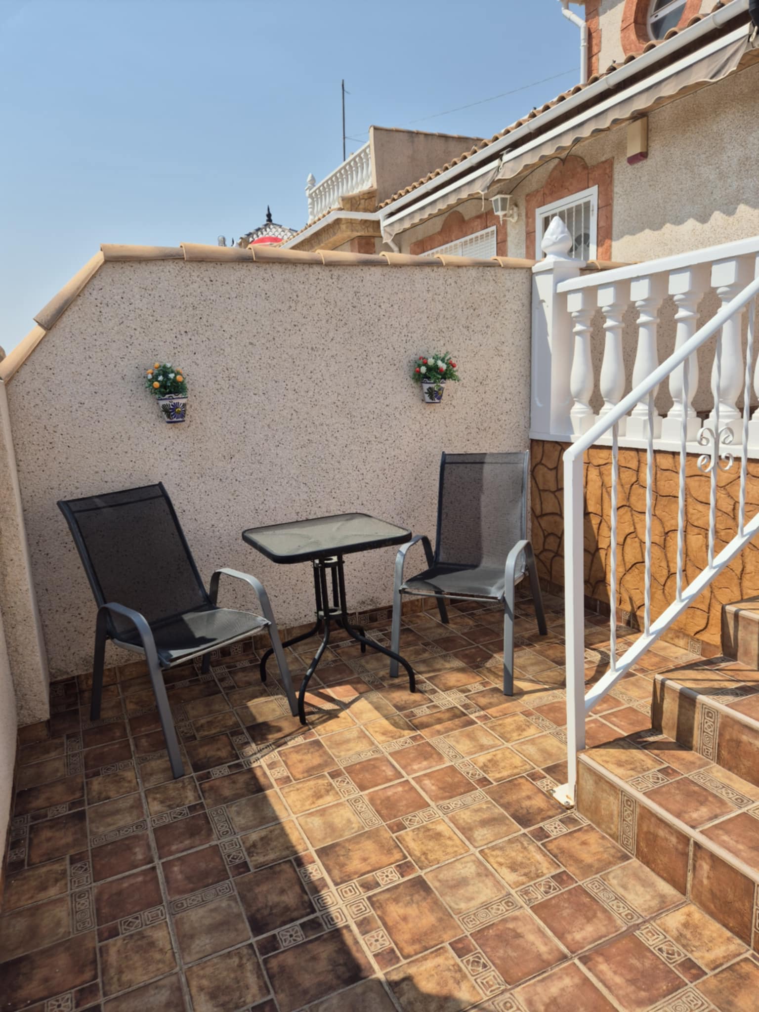 Fallegt raðhús til orlofs- eða vetrarleigu í Playa Flamenca. Húsið samanstendur af 2 svefnherbergjum, 1 baðherbergi, eldhúsi og stofu/borðstofu. Þar sem gengið er inn í húsið er góð verönd en útgengt er á útisvæði baka til þar sem er þvottaaðstaða og grill. Þaðan er stigi upp á stórt og gott sólþak þar sem tilvalið er að njóta sólarinnar. Húsið er staðsett í góðum kjarna, þar sem íbúar hafa aðgang að sameiginlegri sundlaug.