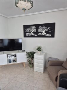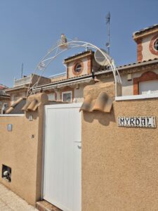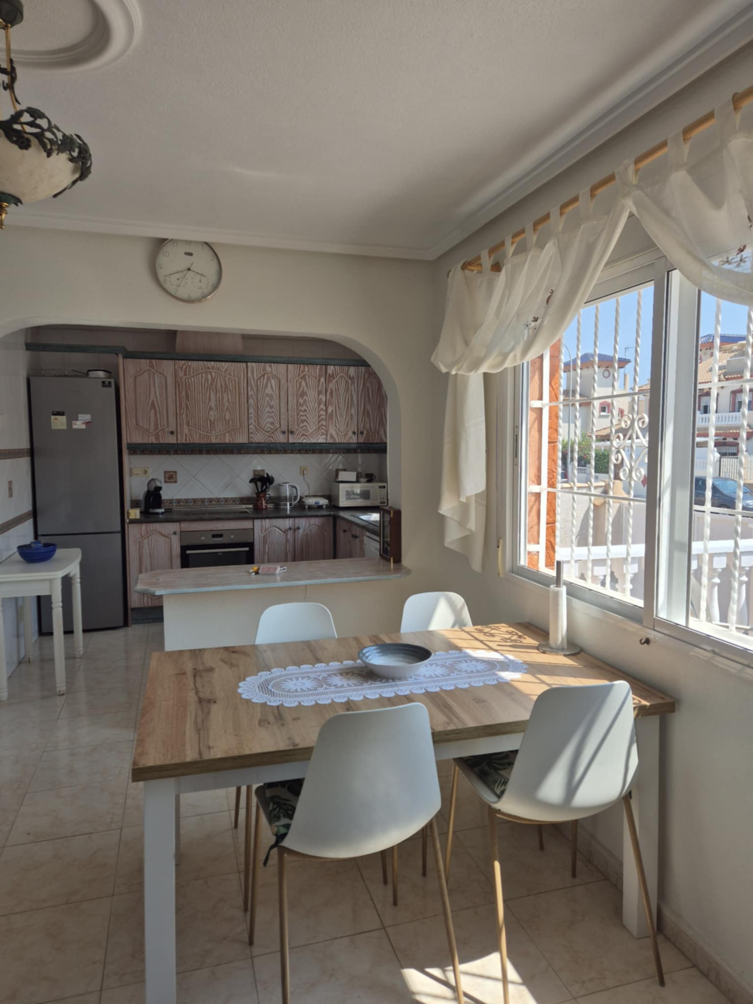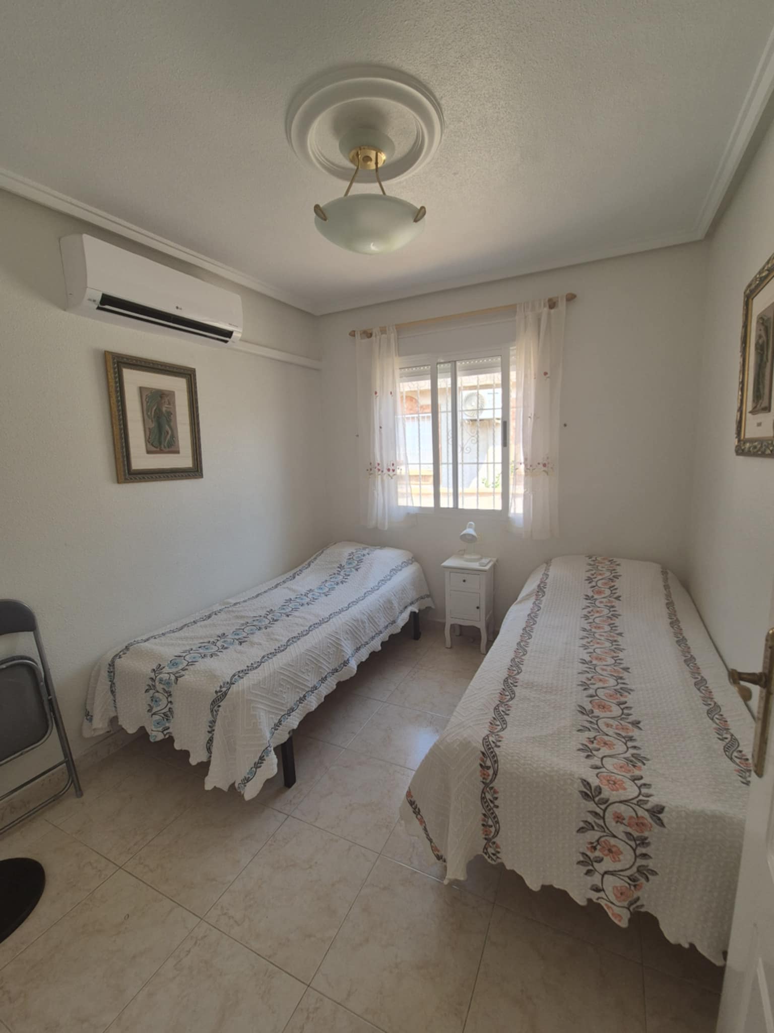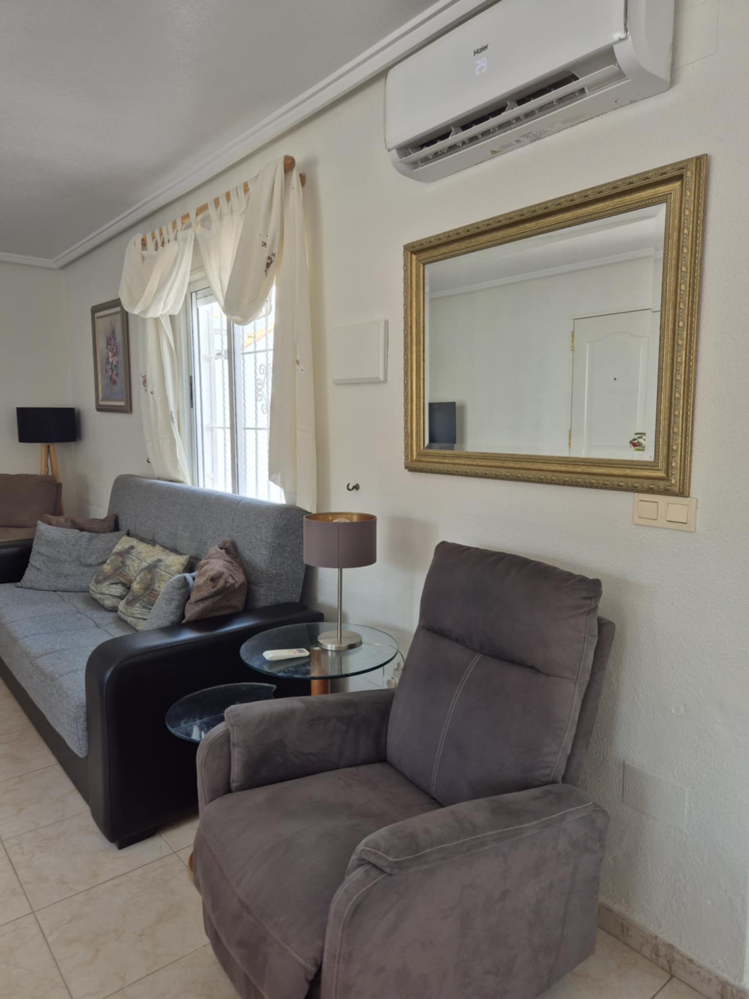 Fallegt raðhús til orlofs- eða vetrarleigu í Playa Flamenca. Húsið samanstendur af 2 svefnherbergjum, 1 baðherbergi, eldhúsi og stofu/borðstofu. Þar sem gengið er inn í húsið er góð verönd en útgengt er á útisvæði baka til þar sem er þvottaaðstaða og grill. Þaðan er stigi upp á stórt og gott sólþak þar sem tilvalið er að njóta sólarinnar. Húsið er staðsett í góðum kjarna, þar sem íbúar hafa aðgang að sameiginlegri sundlaug.