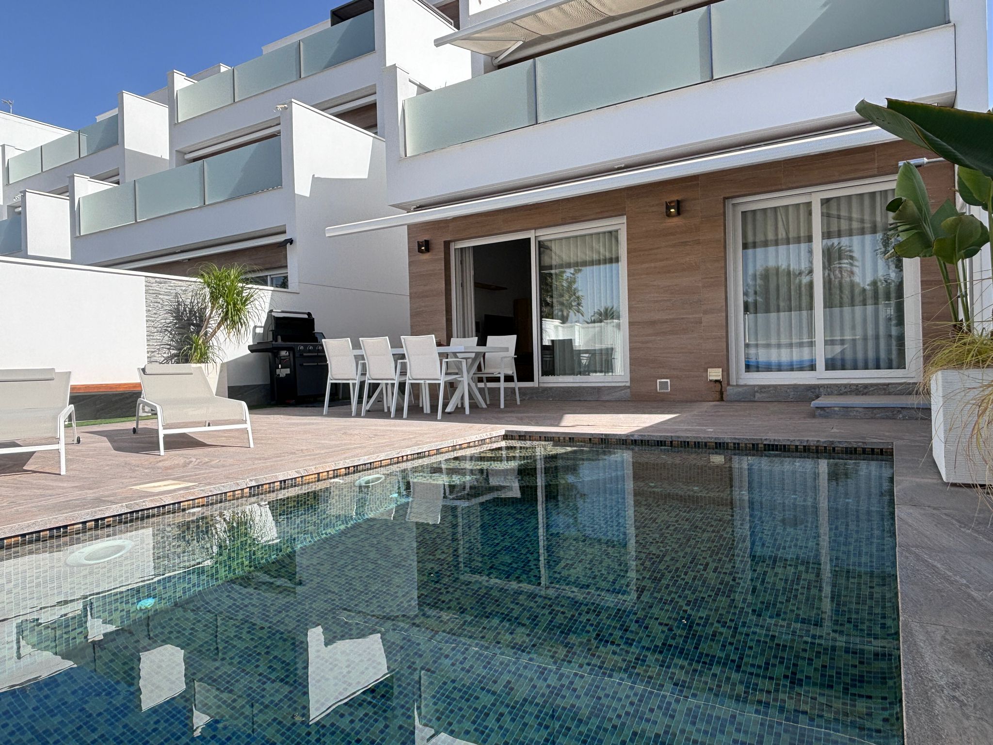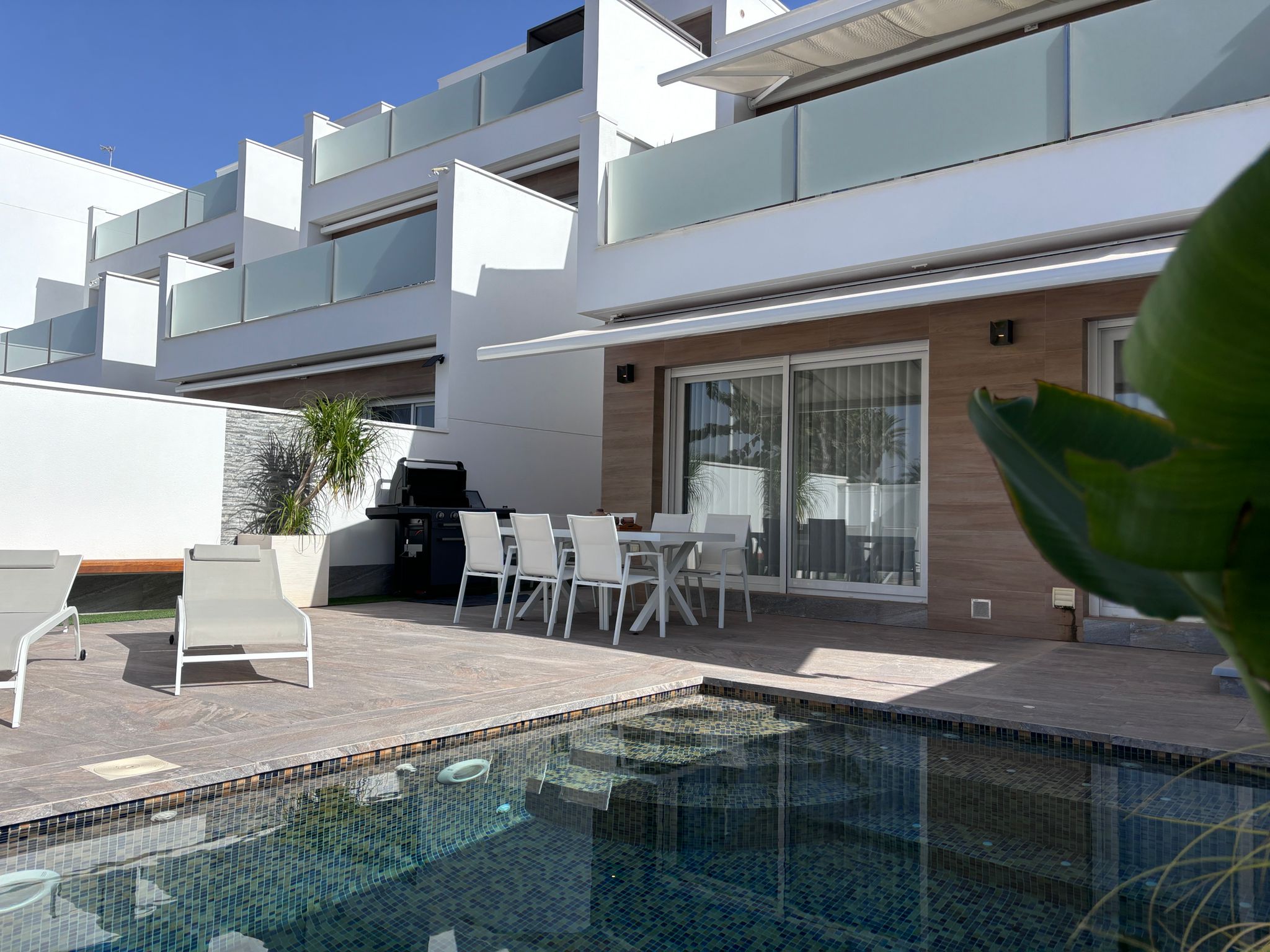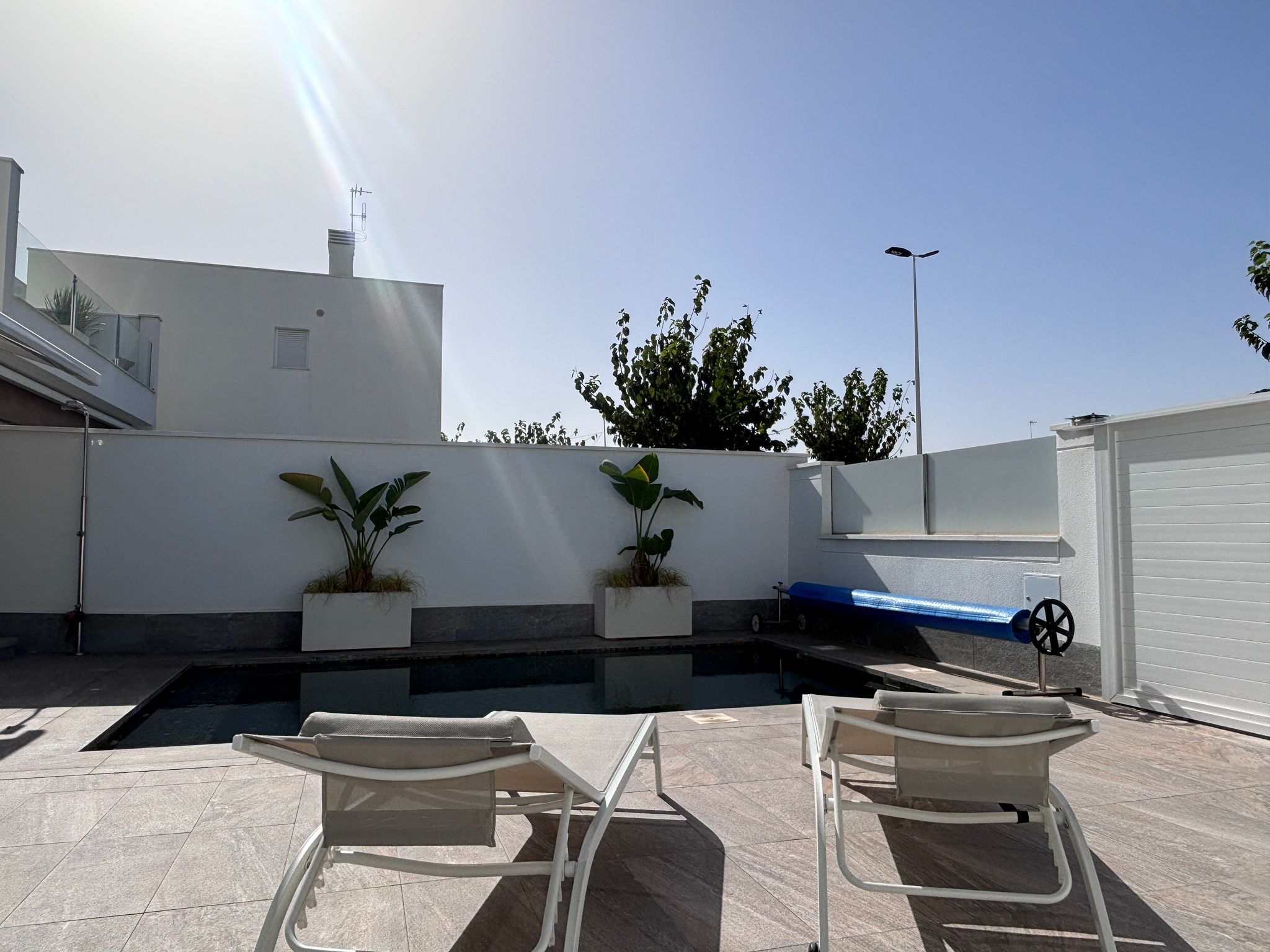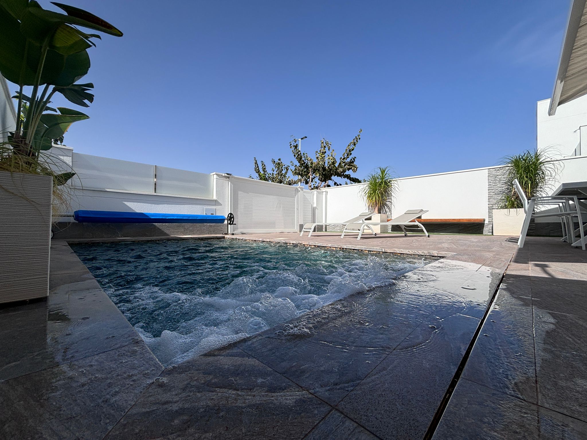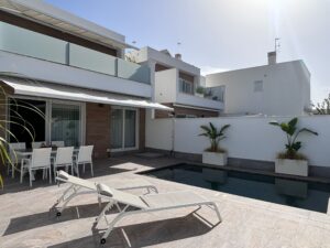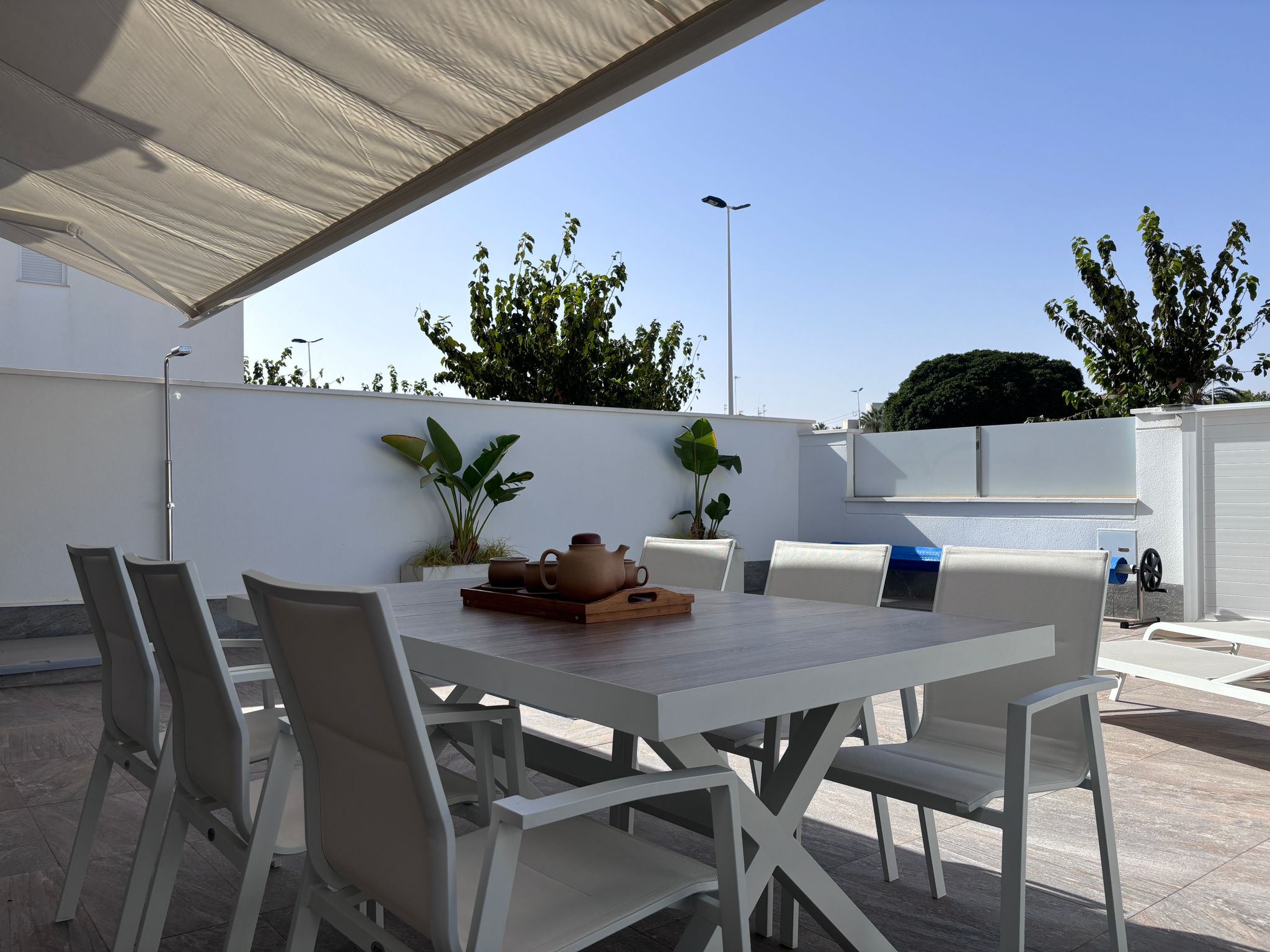 Stórglæsilegt hús til orlofs- eða vetrarleigu í San Pedro. Húsið sem er á 2 hæðum samanstendur af 3 svefnherbergjum, 2 baðherbergjum, eldhúsi, þvottahúsi og stofu/borðstofu. Úr stofunni er útgengt í huggulegan flísalagðan garð þar sem er góð grillaðstaða og upphituð sundlaug. Í þvottaherberginu er saunaklefi. Það er vel hugað að öllum smáatriðum í húsinu og eru húsgögnin vönduð og falleg. Loftkæling er í húsinu.