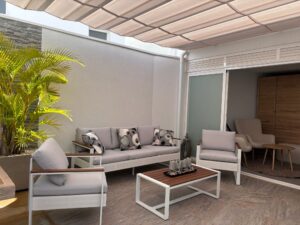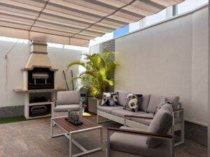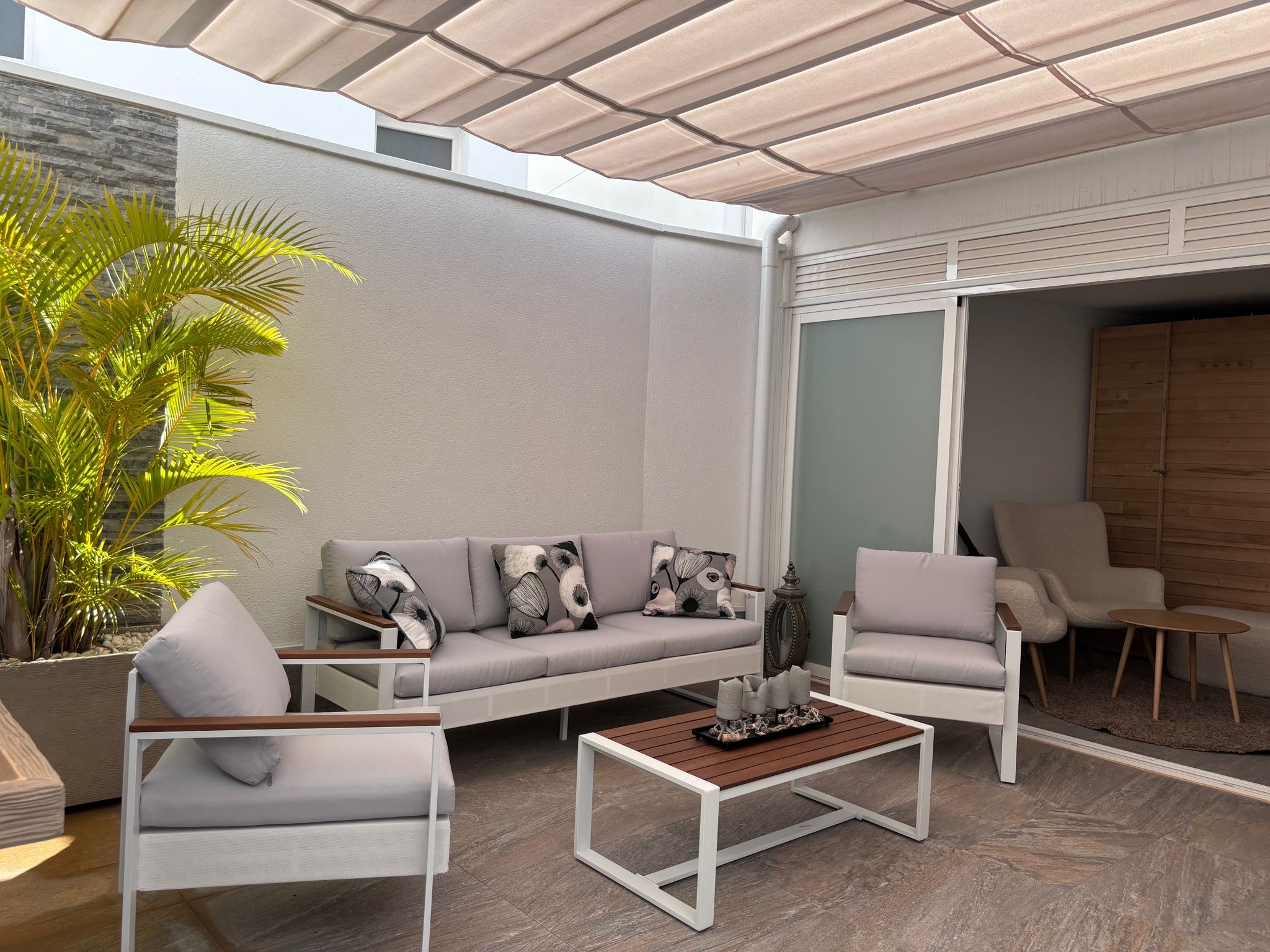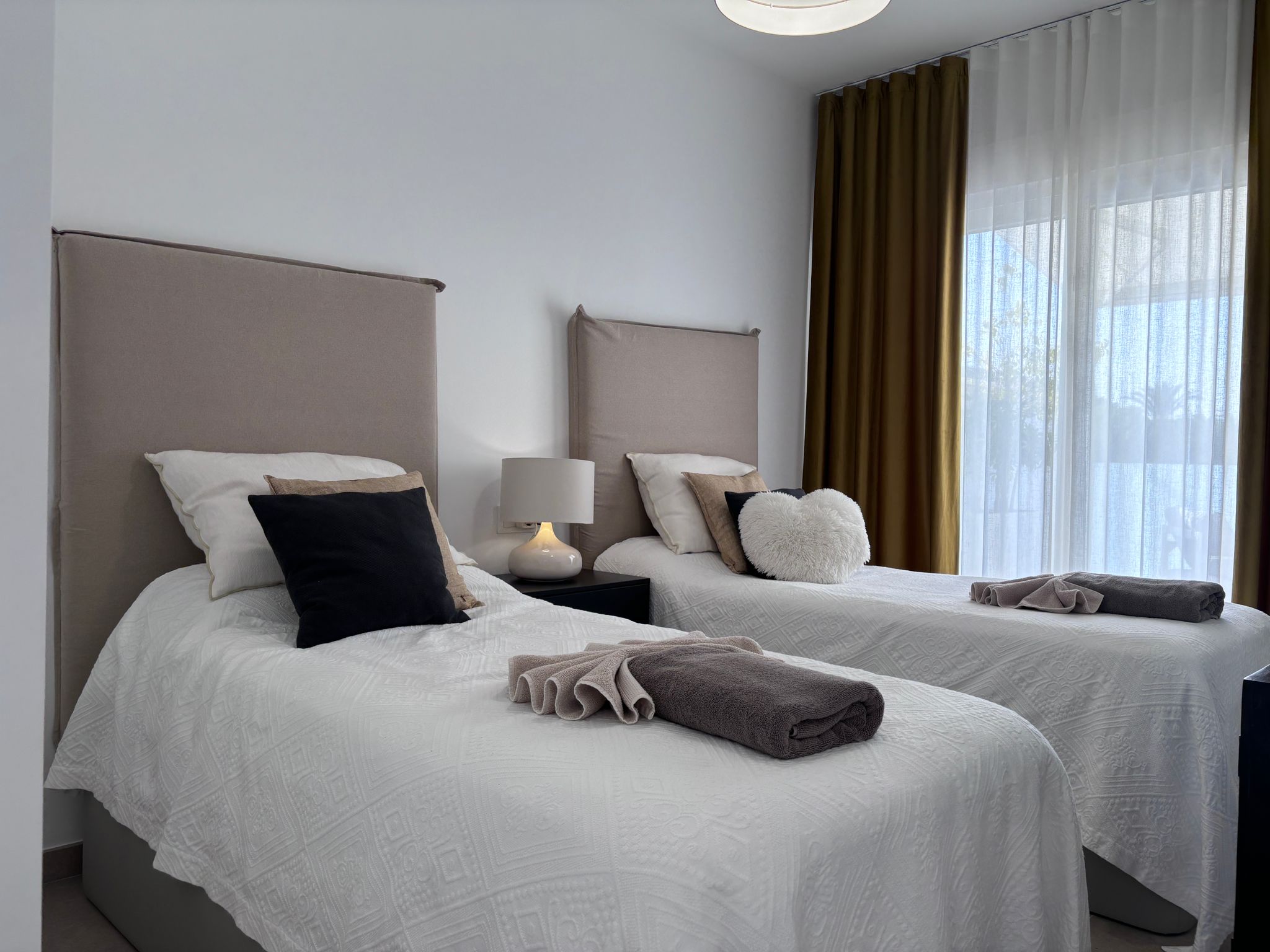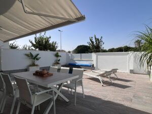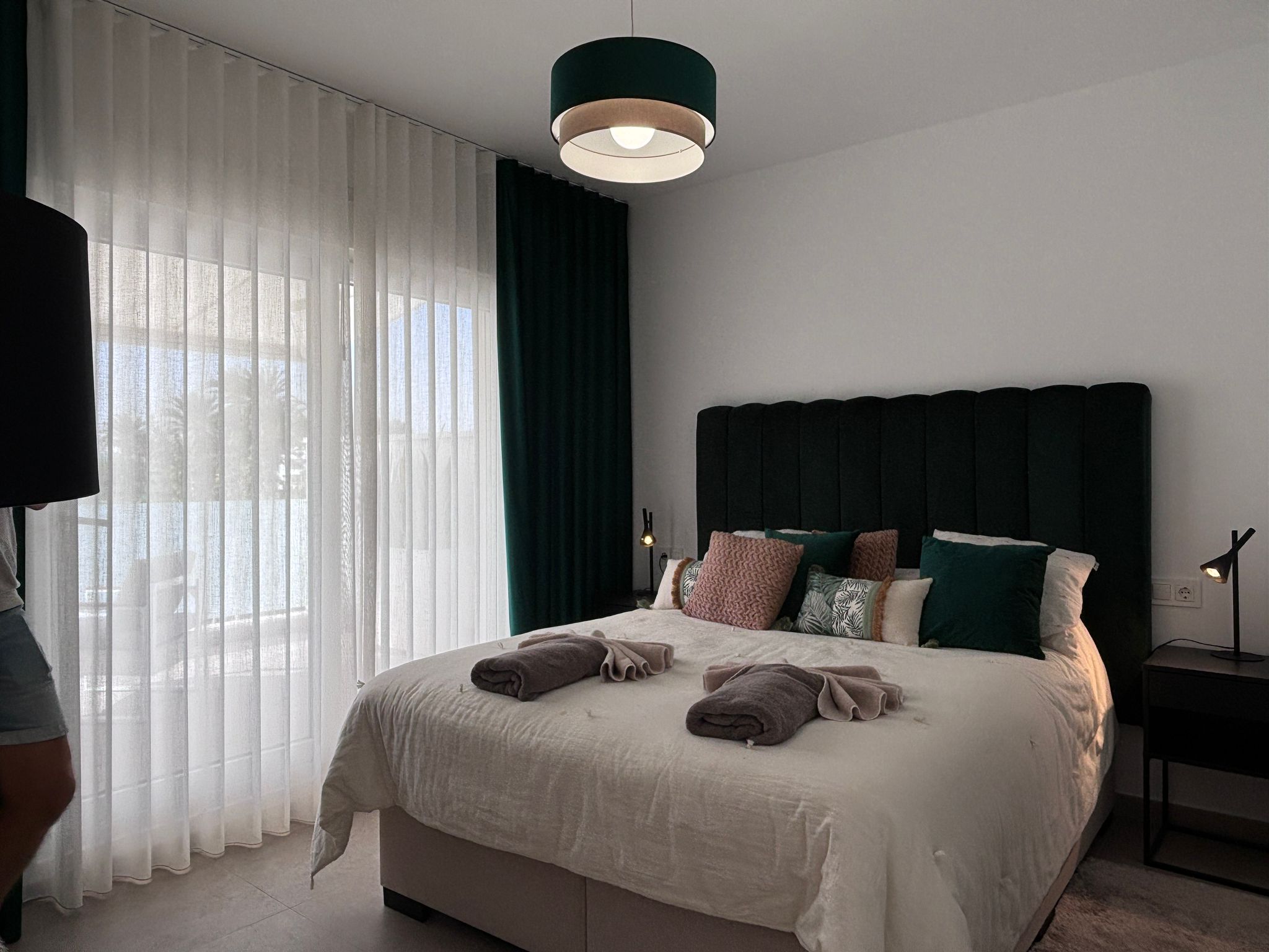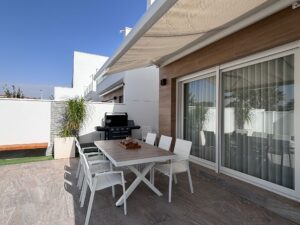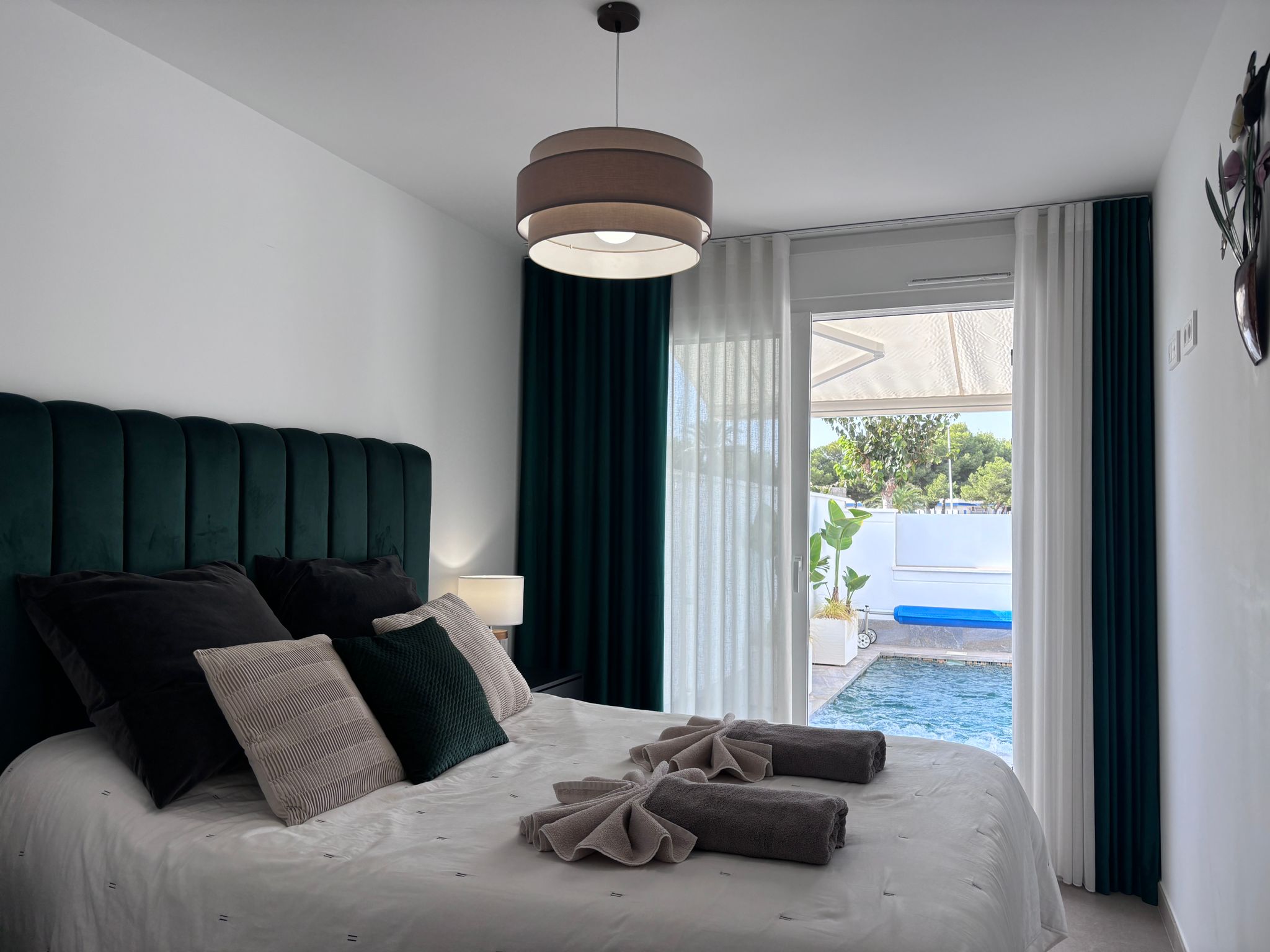 Stórglæsilegt hús til orlofs- eða vetrarleigu í San Pedro. Húsið sem er á 2 hæðum samanstendur af 3 svefnherbergjum, 2 baðherbergjum, eldhúsi, þvottahúsi og stofu/borðstofu. Úr stofunni er útgengt í huggulegan flísalagðan garð þar sem er góð grillaðstaða og upphituð sundlaug. Í þvottaherberginu er saunaklefi. Það er vel hugað að öllum smáatriðum í húsinu og eru húsgögnin vönduð og falleg. Loftkæling er í húsinu.
