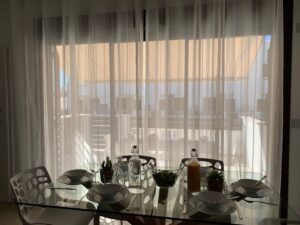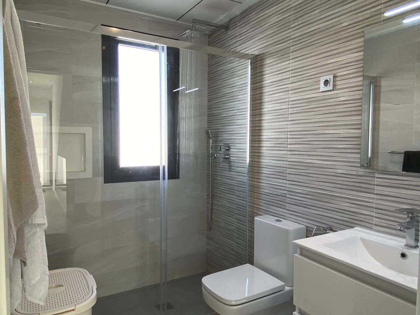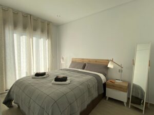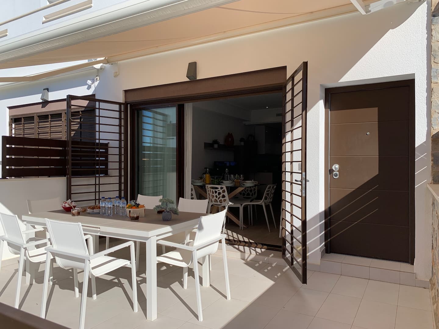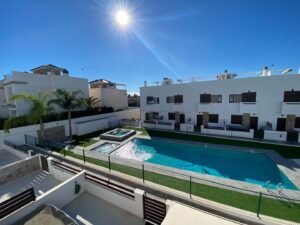 Lýsing: Stórglæsilegt raðhús í Bahia Homes kjarnanum sem er staðsettur í Torreta II hverfinu í Torrevieja. Á jarðhæð eru 1 svefnherbergi, 1 baðherbergi, eldhús og stofa/borðstofa. Á efri hæð eru 2 svefnherbergi og 1 baðherbergi. Við húsið er góð verönd en einnig stórar svalir og sólþak. Loftkæling er í öllu húsinu, hiti í gólfum á baðherbergjum og allsstaðar á jarðhæðinni. Gott WiFi er í húsinu. Íbúðakjarninn er einstaklega fallegur og hafa íbúar aðgang að sameiginlegri sundlaug, nuddpotti og fallegum garði. Húsið snýr út að sundlauginni.Stutt er í alla þjónustu eins og verslanir, veitingastaði og bari og er stór verslunarmistöð í aðeins 1 km fjarlægð. Ströndin og miðbærinn eru einnig í göngufjarlægð.Vinsamlegast hafið samband fyrir verð og laus tímabilSjá fulla lýsingu