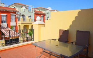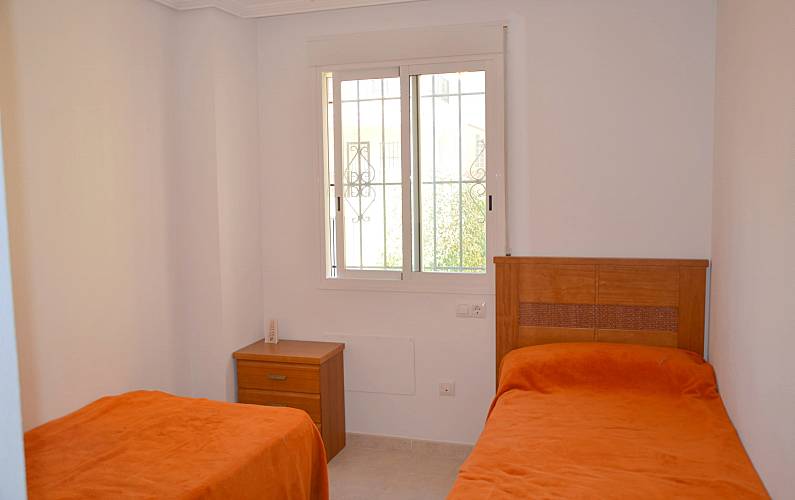 Raðhús í Torrevieja staðsett í aðeins 15 mínútna göngufjarlægð frá La Mata ströndinni. Húsið er á 2 hæðum. Á neðri hæðinni eru 2 svefnherbergi, baðherbergi, fullbúið eldhús og stofa/borðstofa. Úr stofunni er útgengt á litla verönd og þar er einnig bílastæði. Á efri hæðinni er 1 svefnherbergi og baðherbergi en úr svefnherberginu er útgengt á sólþak. Á sólþakinu eru borð og stólar og fallegt útsýni yfir hverfið. WiFi er til staðar í húsinu gegn gjaldi. Loftkæling er í svefnherbergjum.